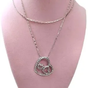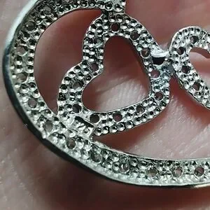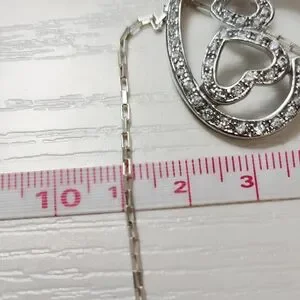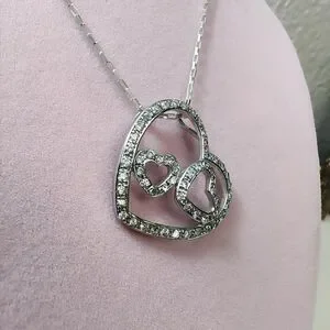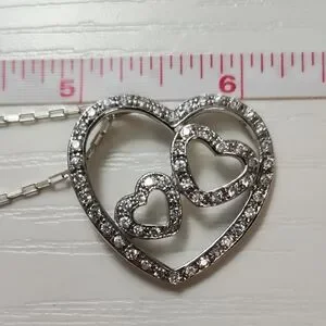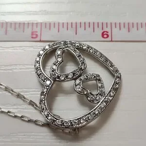 Vintage Sterling Silver Large Triple Heart Pave CZ Pendant with 30" Chain