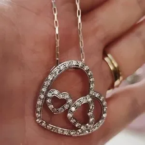 Very pretty Large Triple Heart Pendant encrusted with White Cubic Zirconia, on an extra long 30" Made in Italy Sterling Silver link chain