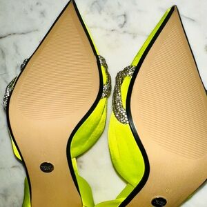 ZARA Satin Effect Rhinestone Heel in Neon green yellow heels Size 38 or 7.5 Slingback heeled pumps in satin effect. Woven rhinestone decoration. Pointed toe. AIRFIT®. Flexible technical sole made of latex foam designed to offer increased comfort. Perfect condition!