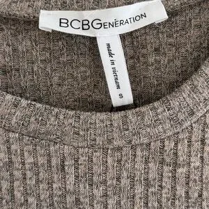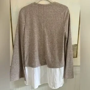 BCBGeneration Layered Peplum Crewneck Sweater Shirt Tan White Bell Sleeve Sz Sm