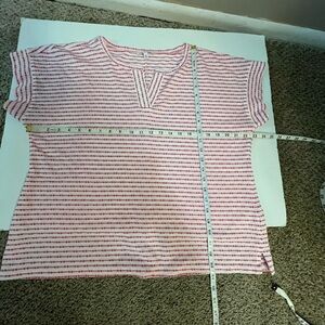 1. White with pink dot stripes , drop shoulder, Split Neck, Side slits