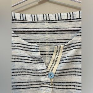 2. White with blue dot stripes, cap sleeves, split neck, square hem