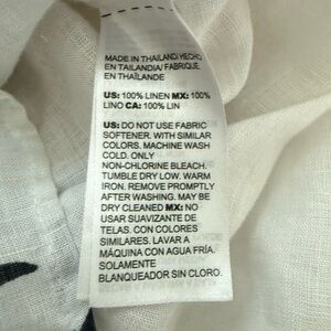 womens white linen top white palm leaf sleeve Lagenlook size 6 artsy tropical