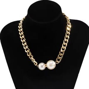 Anthropologie Ginevra Pearl Gold Chain Statement Necklace
