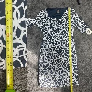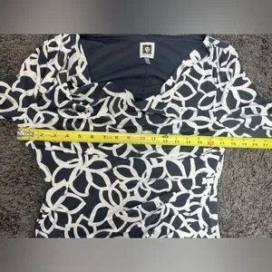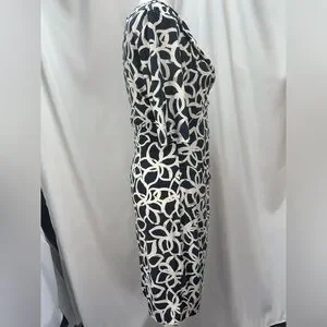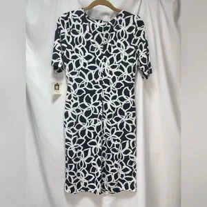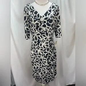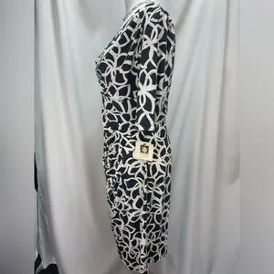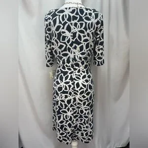 Anne Klein Elegant Slate and light cream floral Patterned Dress women’s size 8