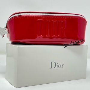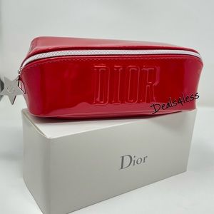 Dior Cosmetic Bag Makeup Case Travel Clutch Wallet Purse Zippered Red LOGO NEW