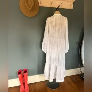 FREE PEOPLE maxi tired white Edie dress button down sz small