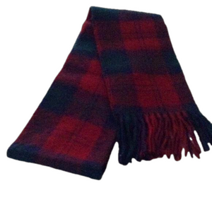 This scarf is burgundy/red plaid never used.made by Cashmillion all acrylic.