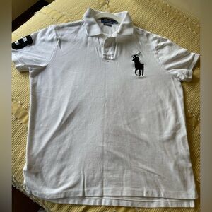 Polo Ralph Lauren Custom Slim Fit Big Pony Mesh Polo Shirt|White/Black, L