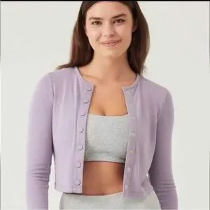 Outdoor Voices, CozyRib Cropped Cardigan, Earl Grey, Size Small