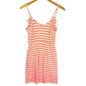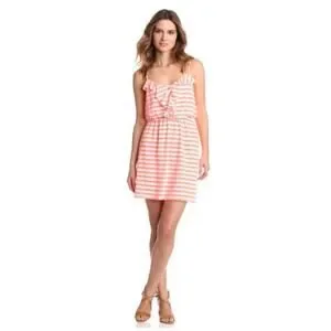 Women’s Callista Neon Orange and White Striped Ruffle Front Mini Dress