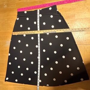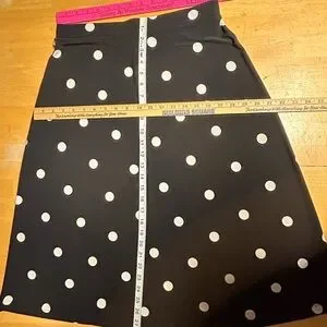 Chic and stylish black skirt with white polka dots. Perfect for any occasion. 96% Polyester, 4% Elastane