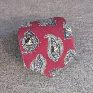 Vintage Disney Silk Tie, Red/Blue Paisley Pattern with Mickey Mouse. In excellent used condition with no damage or defects noted. Measures 59.5" long.