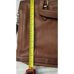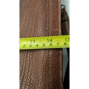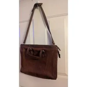 Vintage brown leather messenger bag with two separate zip pockets One interior zip pocket has a rip, a pictured