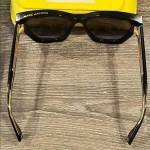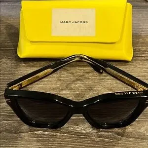 Chic, Marc Jacobs' black sunglasses, featuring sleek angular frames and dark tinted lenses for optimal UV protection. Great used condition. Case included