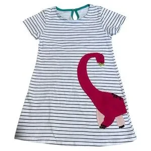 Worn maybe 3 times before she out grew it. Adorable striped dress featuring a playful pink dinosaur design. Perfect for adding fun to any wardrobe.