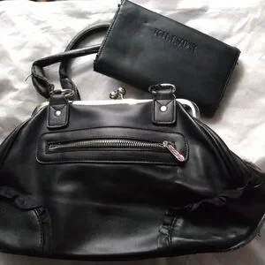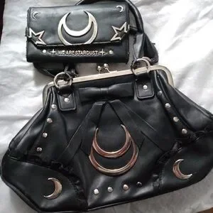 Stylish black and silver women's bag set featuring a unique crescent moon design. Perfect for adding a touch of elegance to any outfit.