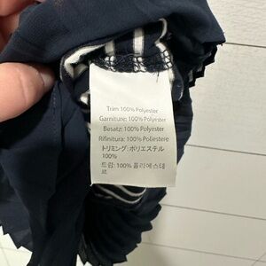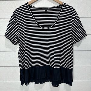 J Crew Navy/White Stripe Top Size Large. Navy pleated ruffle on bottom. Measures approx 20” pit to pit and 24” length. EUC from a smoke free home.