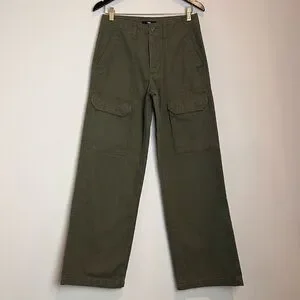 Vans Women’s Arroyo Wide Leg Cargo Pants Olive Green 100% Cotton Canvas Size 26