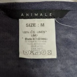 Animale Blue Short Sleeve Linen Open Front Cardigan Size M