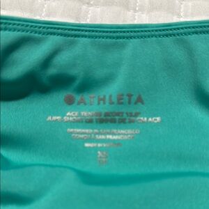 Athleta teal sports bra & matching tennis skirt set. Perfect for workouts. Silicone around the thigh for stay in place while you move. Pockets on each side of the under short. From nonsmoking pet free.