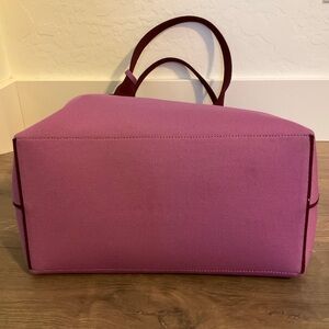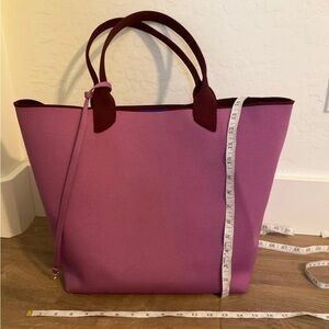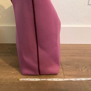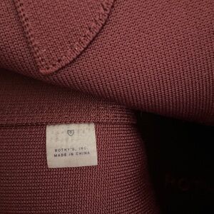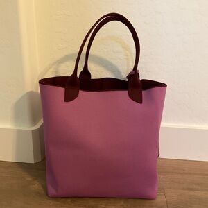 Rothy’s the Lightweight Tote in Collegiate Currant color, in practically perfect condition! Reversible and machine washable! Only flaws: The tiniest bit of soil on the bottom of bag, and tiny, faint mark on front bottom of bag, both barely noticeable. Also, slight creases in bag from storing as pictured in last picture, see pics.