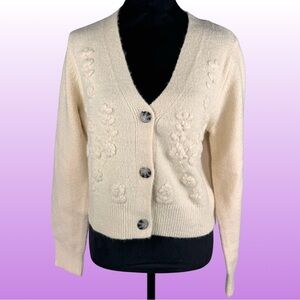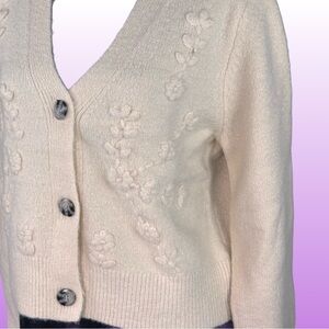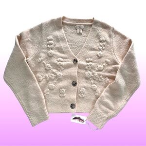 Jessica Simpson Women’s Crop Cardigan Sweater Embroidered Floral Cream NEW