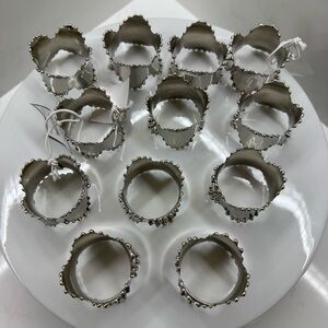 The Classic Design Napkin Rings With Wavy Cut Edge bring a contemporary twist to a classic design The small studs around the rings edge add texture and dimension to the setting Pair with plain light toned table napkins and placemats Features . Collection Classic Design Napkin Ring. Set of 12 Specifications . Color Silver. Material Brass