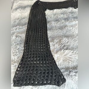 Elegant Black Crochet Mini Tank Sleeves Scarf