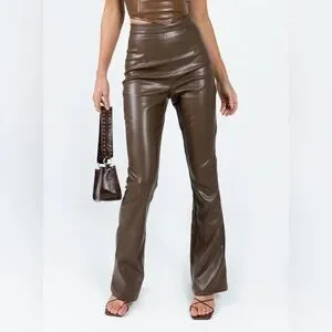 Princess Polly Viviene Brown High Waisted Leather Pant