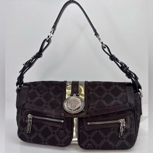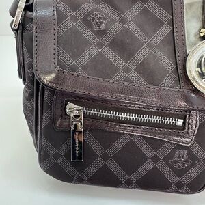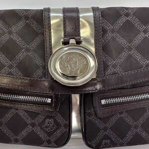 Elevate your vintage 2000 style with this Versace women's bag in sleek brown canvas and leather and silve hardware Perfect for any occasion, this bag combines luxury and functionality.
