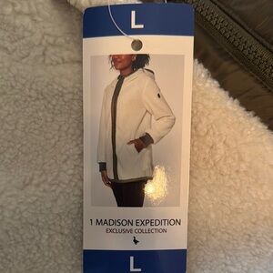 Women's White and Green Hooded Jacket