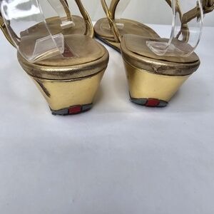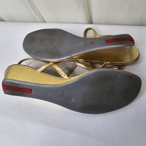 Prada Gold Leather T-Strap Wedge Sandals Size 38