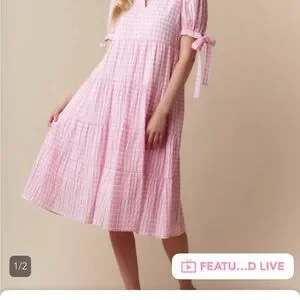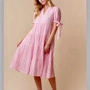 Chic pink checkered midi dress by Fantastic Fawn. Features a classic collar and button-down front. Perfect for casual outings.