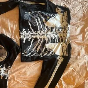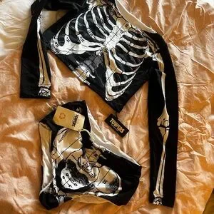 Black and white skeleton print set with long sleeve top and bottoms. Perfect for a goth beach look. This has never fit me due to it being more of a true small than a medium! So keep that in mind when purchasing!