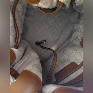 Michael Kors Navy Blue/Brown Canvas Marina Drawstring Tote. Measurements in pics. In great condition!