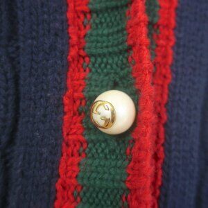 GUCCI BEE-EMBROIDERED CARDIGAN NAVY WOOL RIBBED KNIT SIZE SMALL V-NECK SWEATER