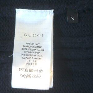 Gucci Bee-Embroidered Cardigan Navy Wool Ribbed Knit Size Small V-Neck Sweater