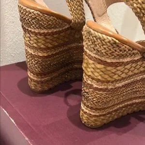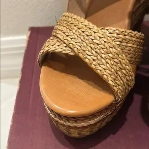 Step out in style with these chic braided platform sandals. Perfect for any occasion, these tan sandals offer both comfort and elegance. Fits a 7.5 which is my size. They are an 8. See photo for measurements