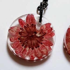 Elegant floral resin earrings featuring vibrant red and pink hues. Perfect for adding a touch of nature-inspired beauty to any outfit.