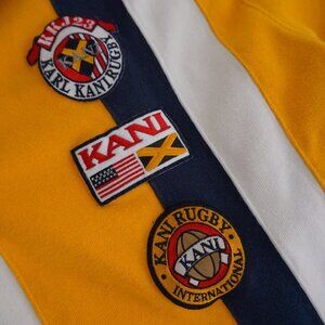 Vintage ‘90s Karl Kani Jeans Rugby Tour White Yellow Navy 100% Cotton Polo Shirt – a bold statement piece from the golden era of streetwear. Featuring a striking white, yellow, and navy color-block design, this polo embodies the signature Karl Kani aesthetic with a sporty yet effortlessly cool vibe. The classic rugby-style collar and embroidered logo details make it a must-have for vintage and hip-hop fashion enthusiasts.