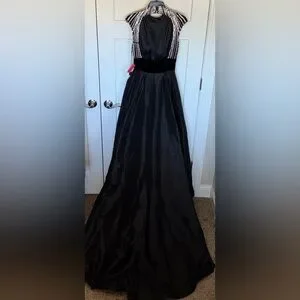 NWT Mac Duggal 77269R - Black Beaded Open Back Pocketed Ball Gown