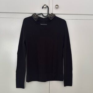 Club Monaco Black Sweater with Embroidered Collar