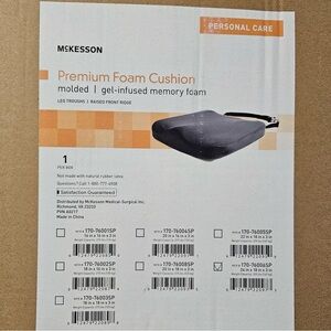 XL McKesson Premium Foam Cushion with molded gel-infused memory foam. Brand new in factory-sealed box. One corner of the box is slightly crushed, as it fell on that corner.