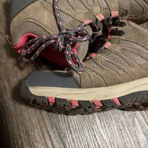 Bearpaw Corsica Hiking Boots Taupe Suede Pink Lace Up Waterproof Kids Sz 2