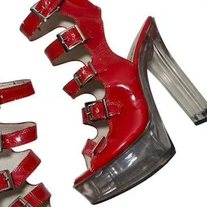 ‼️NOW SOLD‼️1990s RARE “Hot Peppers” Custom Red Strappy Buckle Platform Heels