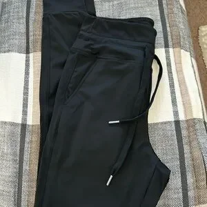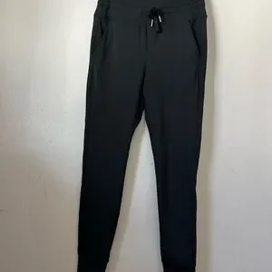 Comfortable and stylish black jogger pants perfect for everyday wear. Features a drawstring waist for a customizable fit. Buttery soft stretchy jogger/leggings in a size Medium regular.