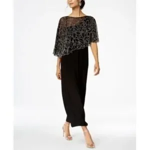 MSK Women's New Asymmetrical PL Beaded & pearl like Overlay …Gown in black 😎