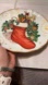 Festive Holiday Plate with Red Stocking, garland, candy cane, presents & trumpet. Celebrate the season with this charming holiday plate featuring a red stocking and a delightful teddy bear. Perfect for adding a festive touch to your home decor.