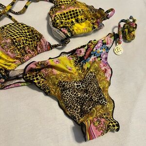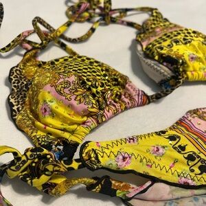 Luli Fama Vibrant Yellow Patterned Bikini Set Size XS